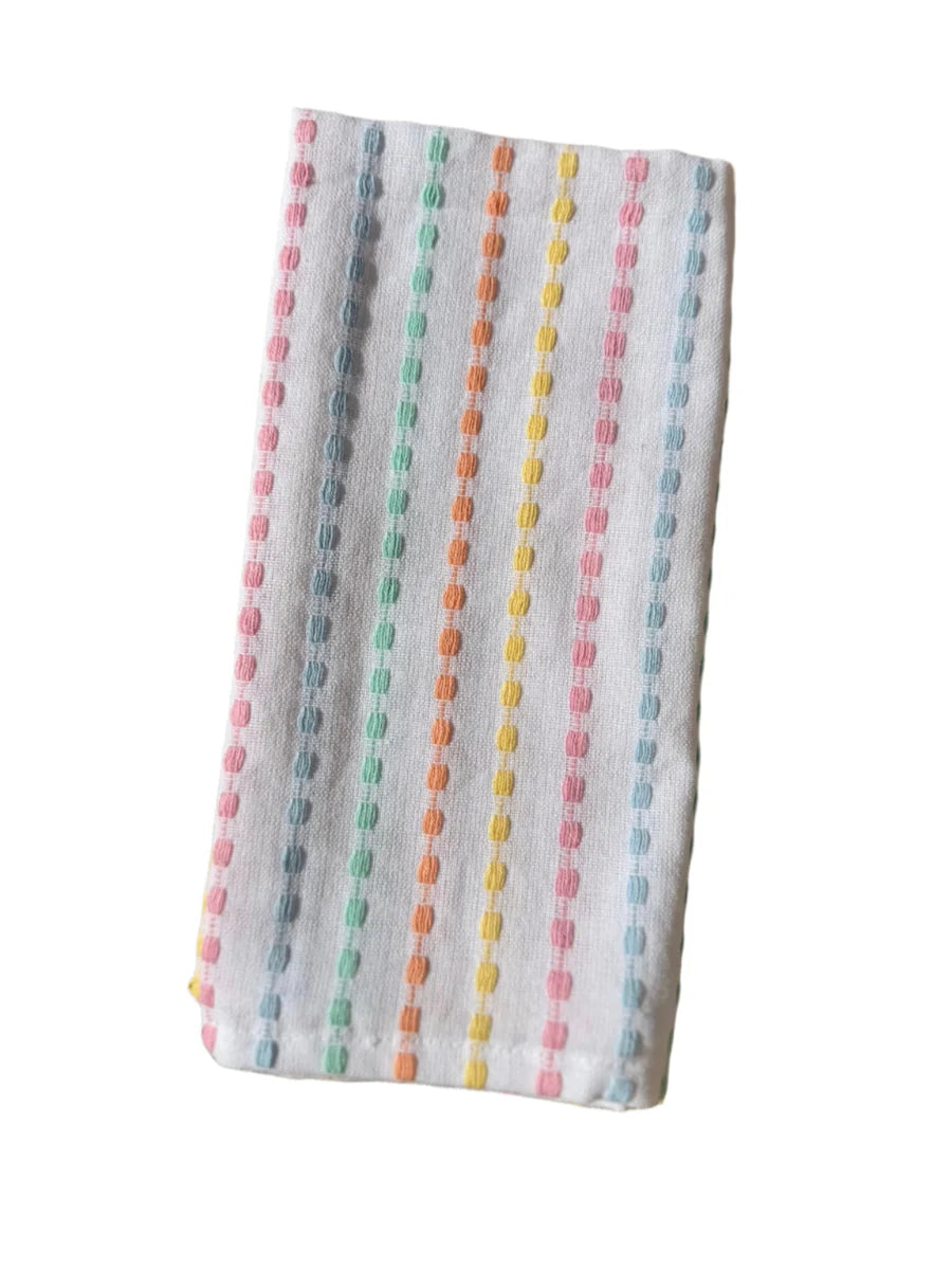 Brighten your dining experience with this playful set of four pastel-coloured cotton napkins. Each 48x48cm napkin features soft hues like candy pink, mint green, sky blue, and yellow, adding a cheerful touch to any table setting. Crafted from cotton and easy to clean, making entertaining both fun and practical.