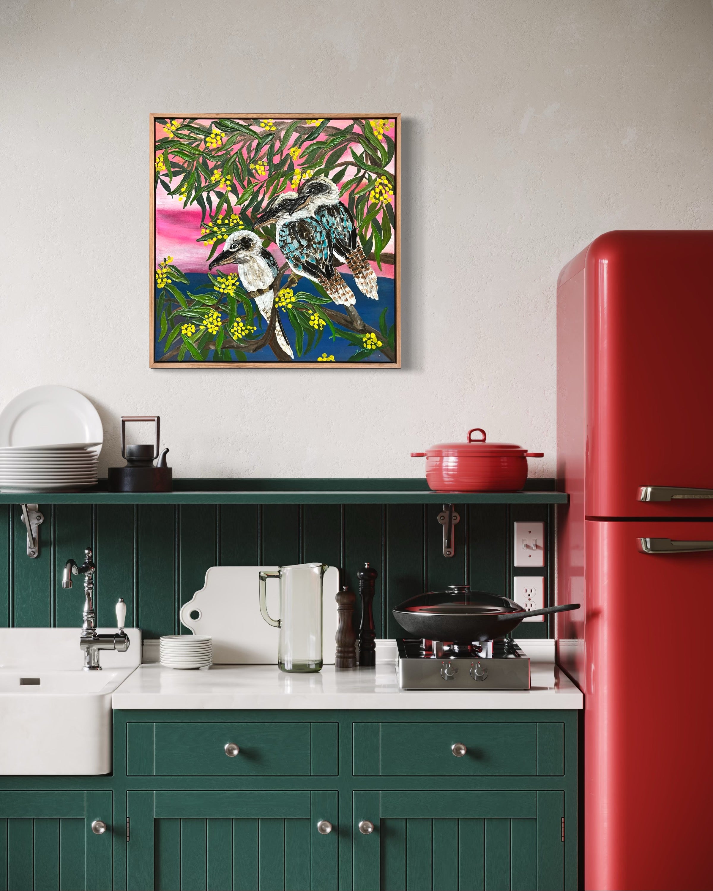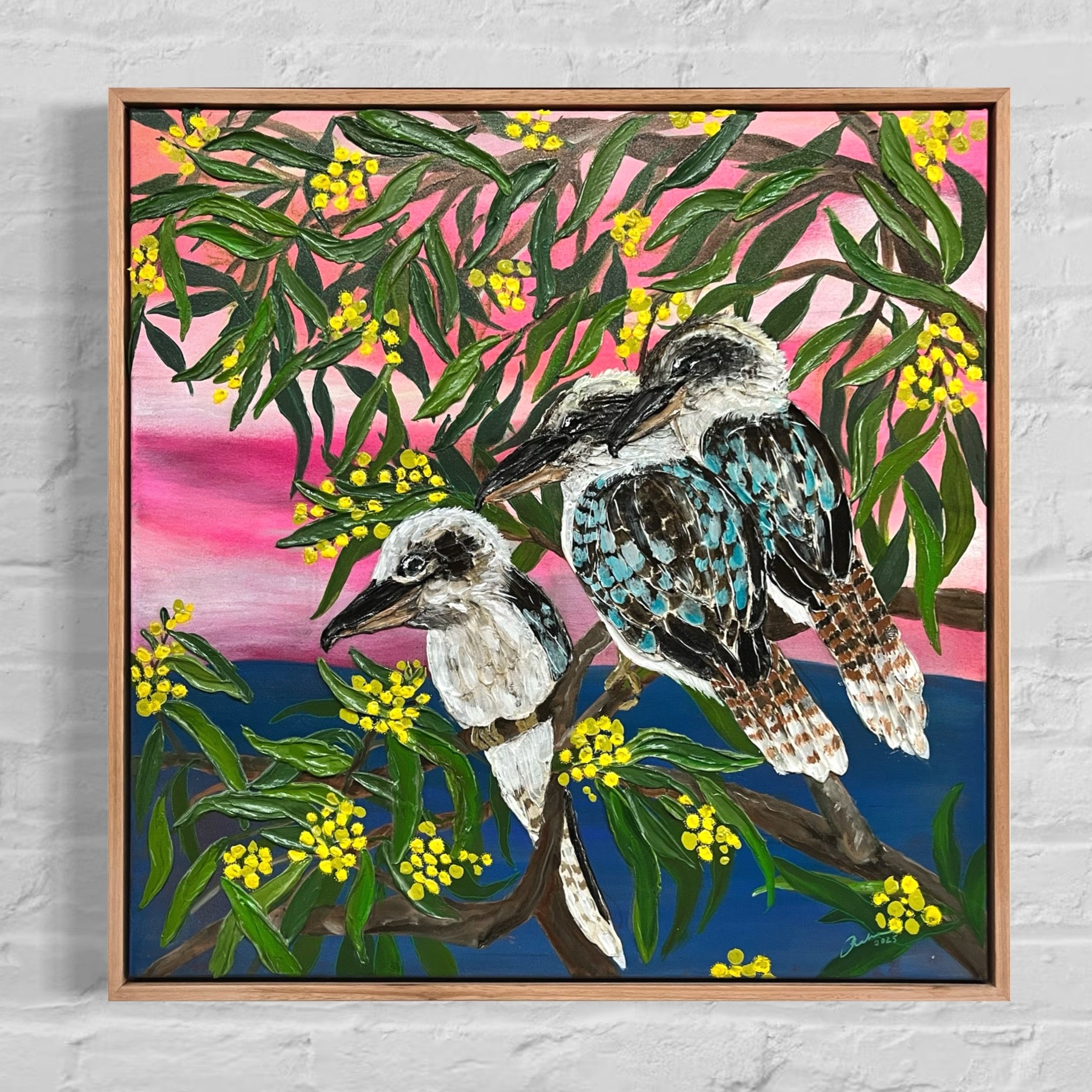 Acrylic on canvas, framed in timber & ready to hang.
