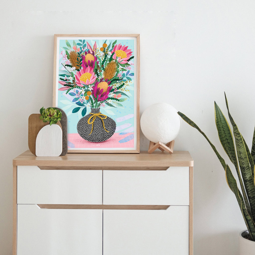 Bushland Botanicals is a vibrant jigsaw puzzle showcasing striking proteas, golden banksias, and other native Australian flora in a beautifully patterned vase. With its intricate details and lively colors, it offers a delightful challenge for nature lovers and puzzle enthusiasts alike and perfect for unwinding, while appreciating the beauty of bushland blooms! Designing to the latest in homeware design, as well as key colours and trends, we are committed to regularly updating our puzzle range with fresh designs to coincide with ever changing home styling. We want you to enjoy the fun of puzzling and afterwards appreciate our designs hanging in your home. Finish puzzle size: 70x 50cm