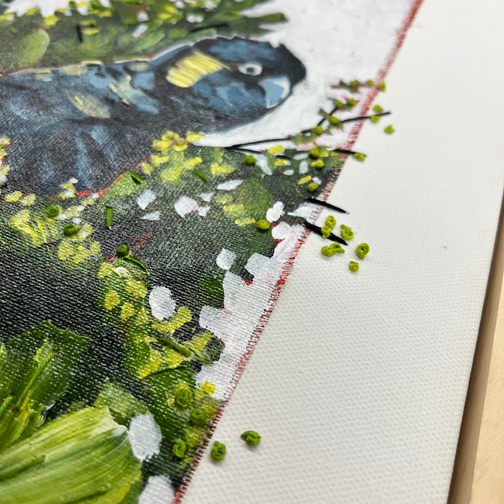 A Gippsland-based artist, she represents the warmth of rural life and our connection to animals through expressive, mixed-media paintings. Rachel’s work is textured and often combines acrylic, charcoal, inks, pen and embroidery thread.