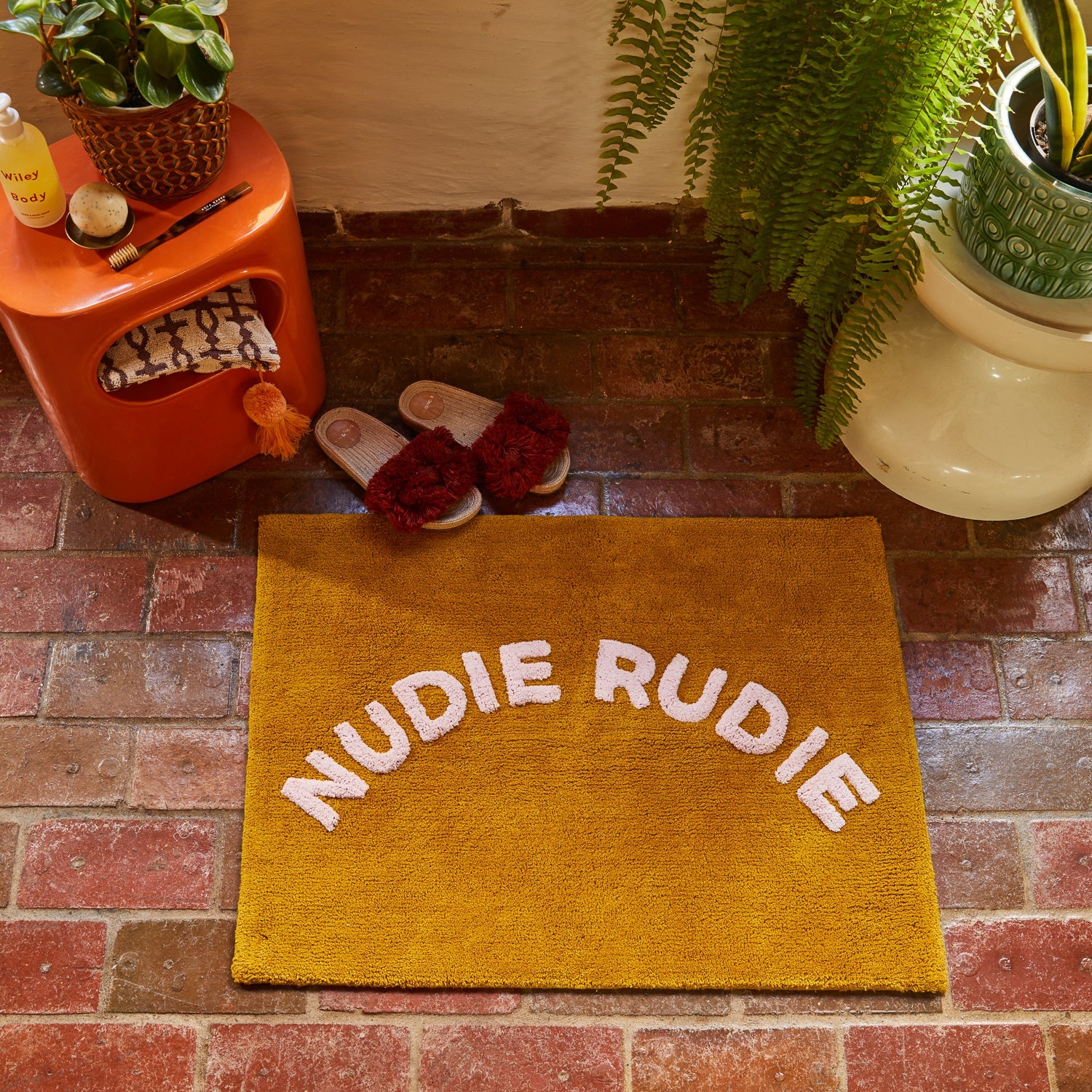 Plant your feet each morning on our incredibly plush, super absorbent, Nudie Rudie bath mat and start every day with a cheeky giggle. Hand-tufted by artisans, our Nudie Rudie bath mats are super special and iconically Sage x Clare.