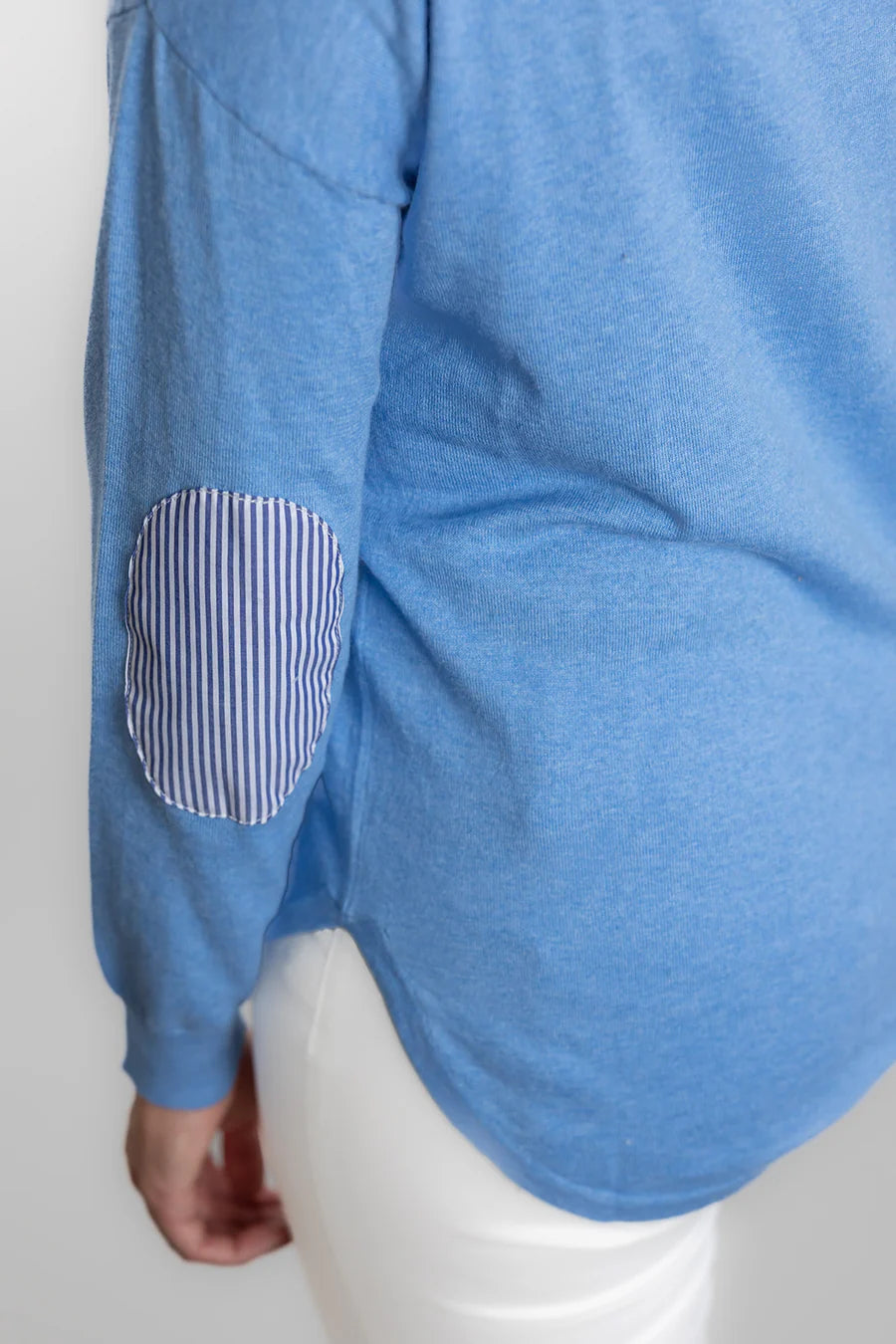 Elbow Patches: Blue & White Stripe