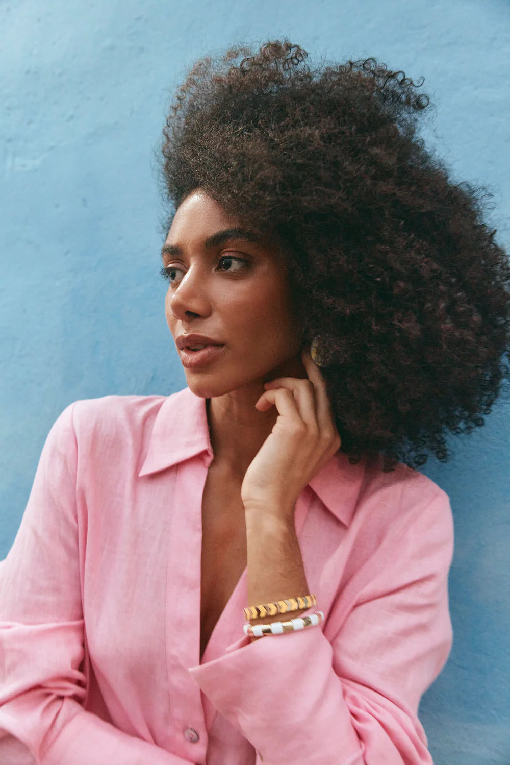 Amp up your look with the Seraphic Cuff! This fabulous accessory is just what you need to add some contrast or accentuate the subtleties in your ensemble. With its dazzling chevron beading in lively summer tones, it's bound to make a statement. Opt for a single cuff or stack them up for extra impact!