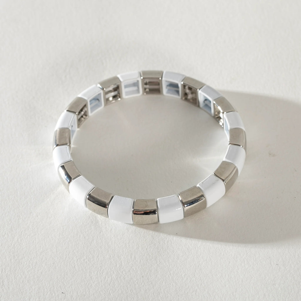 Silver Enamel Stacking Bracelet - Dotty Silver