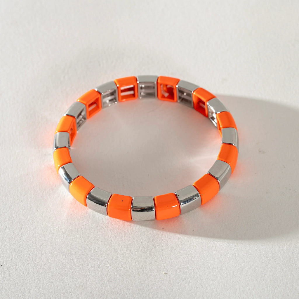 Silver Enamel Stacking Bracelet - Stripe Rounded Orange /Silver