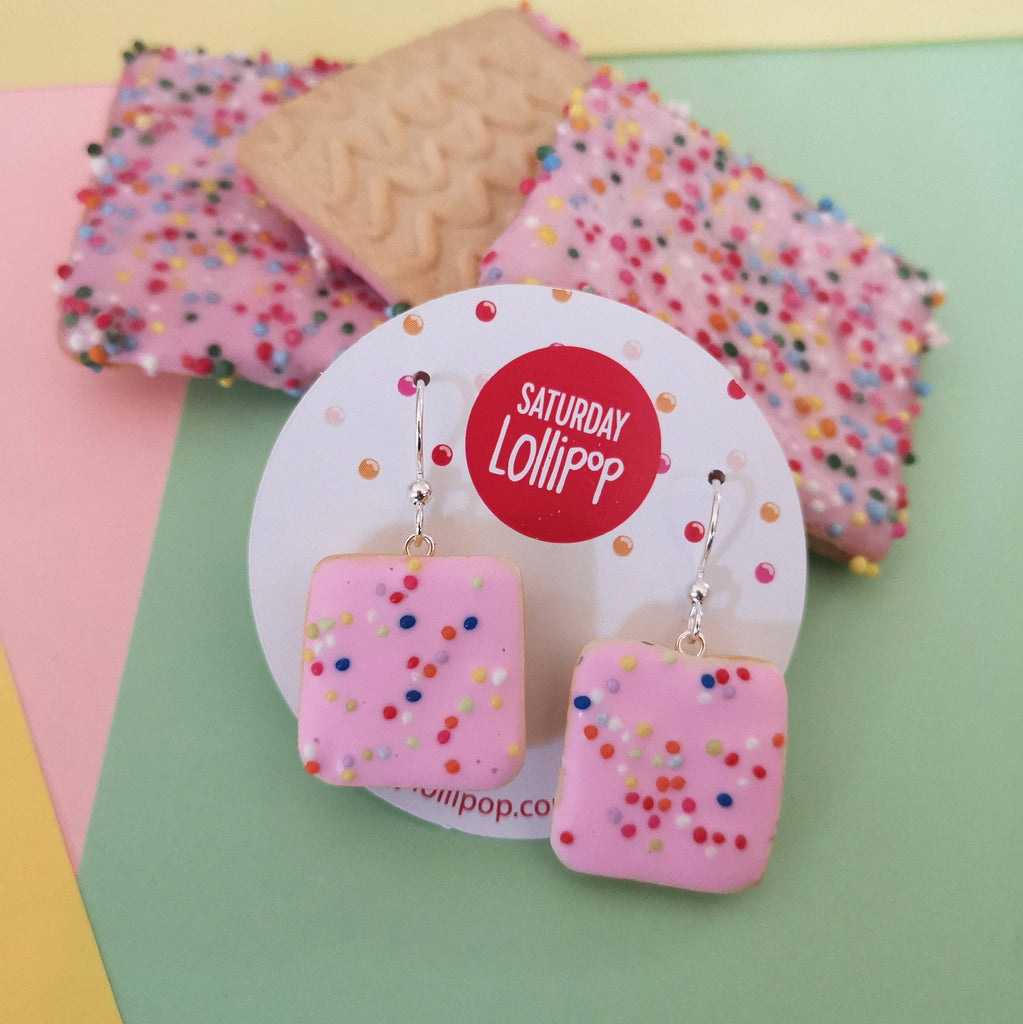 The best of the biscuit tin! These 100's and 1000's biscuit earrings are super realistic and such fun! Choose from either dangles (silver plated ear wire, 2cm x 2cm) or studs (1cm square with surgical steel posts and clasps). Colourful, cute earrings to add a bit of fun! They come in a drawstring bag and box.