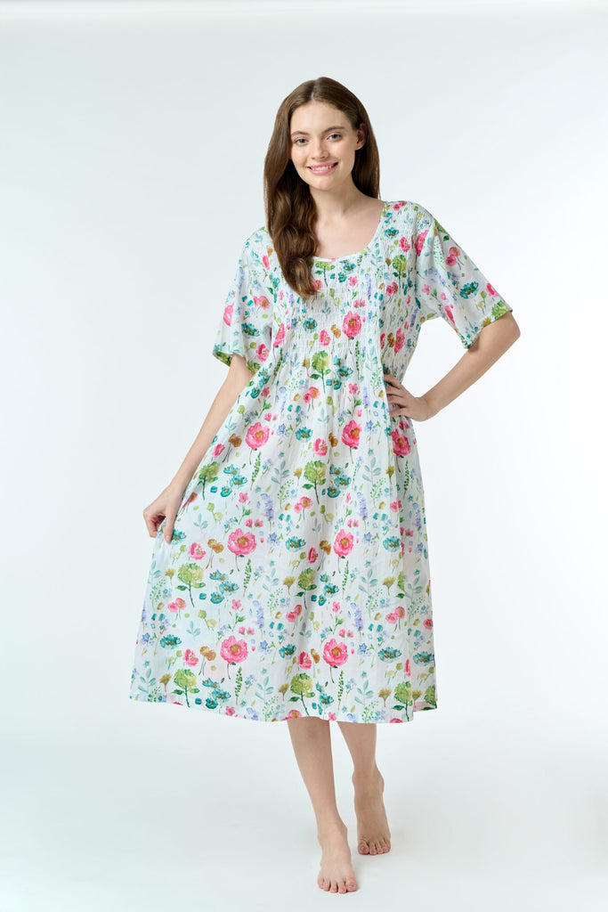 Deanna Cotton Nightie - Shirred Bodice