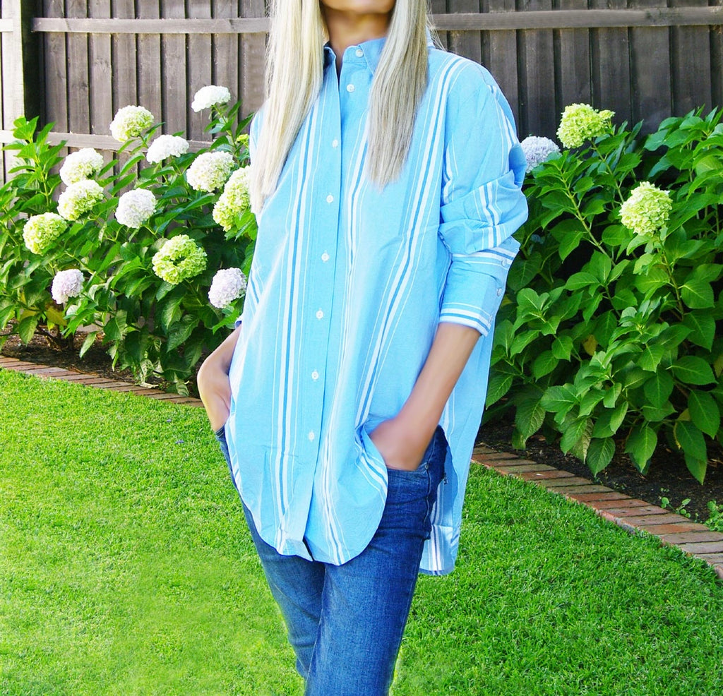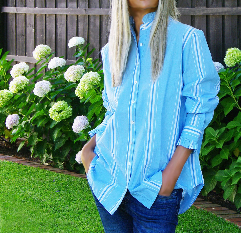 Poppy - Sky Blue & White Yarn Dyed Stripe Shirt