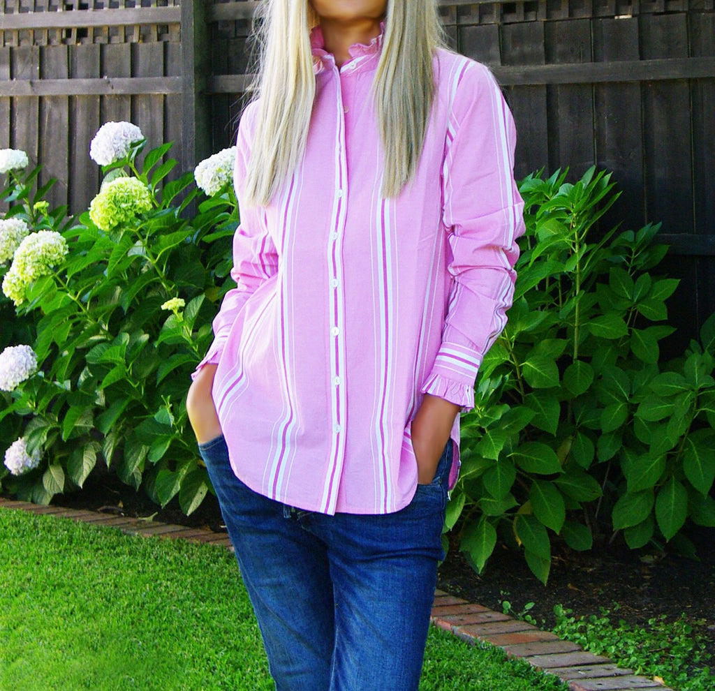 Maple - Cotton Stripe Shirt in Sherbet Pink