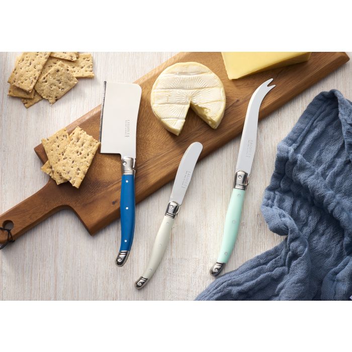 Crafted by hand in Laguiole France this set includes 1x cheese cleaver/1x cheese knife/1x pate knife.