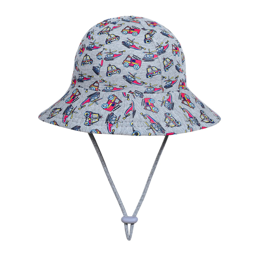 Zoom into summer with the Bedhead Toddler Bucket Hat in EMERGENCY, where every fire engine, ambulance, and police car is racing across a neutral grey marle canvas. This fun and fearless design will delight vehicle-loving toddlers while keeping them safe in the sun. The flexible brim gently shades their face without interrupting their line of sight, making it ideal for active little ones.
