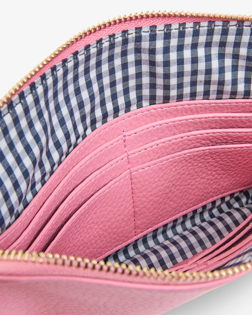The Elms+King Bowery Wallet offers the functionality of a wallet, with the hands-free ease of a crossbody bag. Made from 100% recycled premium polyurethane with 14-karat light gold-plated hardware, the Bowery Wallet has space inside for 12 credit cards and two open top slip pockets. With its adjustable/removable crossbody strap, this piece can be used as a compact clutch, shoulder bag or crossbody bag.
