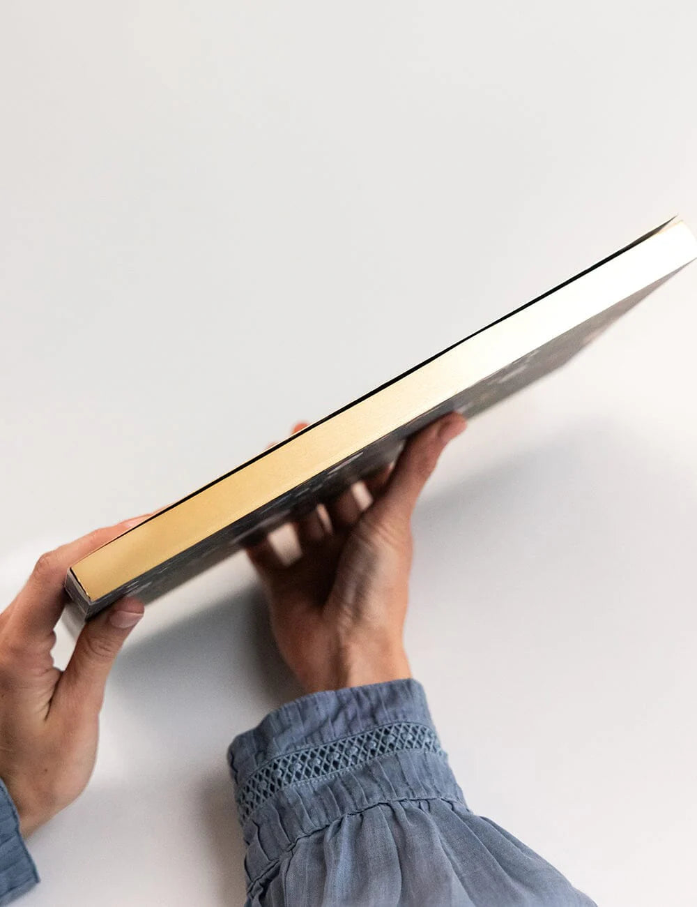 Illustrated by Vicky Lastra, Featuring 100 heavyweight tear off blank pages. Bound with a gummed edge, and full heavyweight wrap around cover. Removable Gold Foil printed Bellyband and gold foil and gilded edges.
