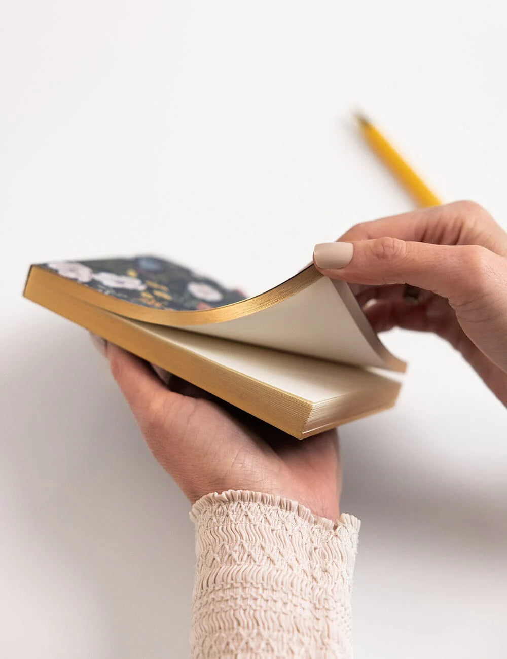 Illustrated by Vicky Lastra, Featuring 100 heavyweight tear off blank pages. Bound with a gummed edge, and full heavyweight wrap around cover. Removable Gold Foil printed Bellyband and gold foil and gilded edges.