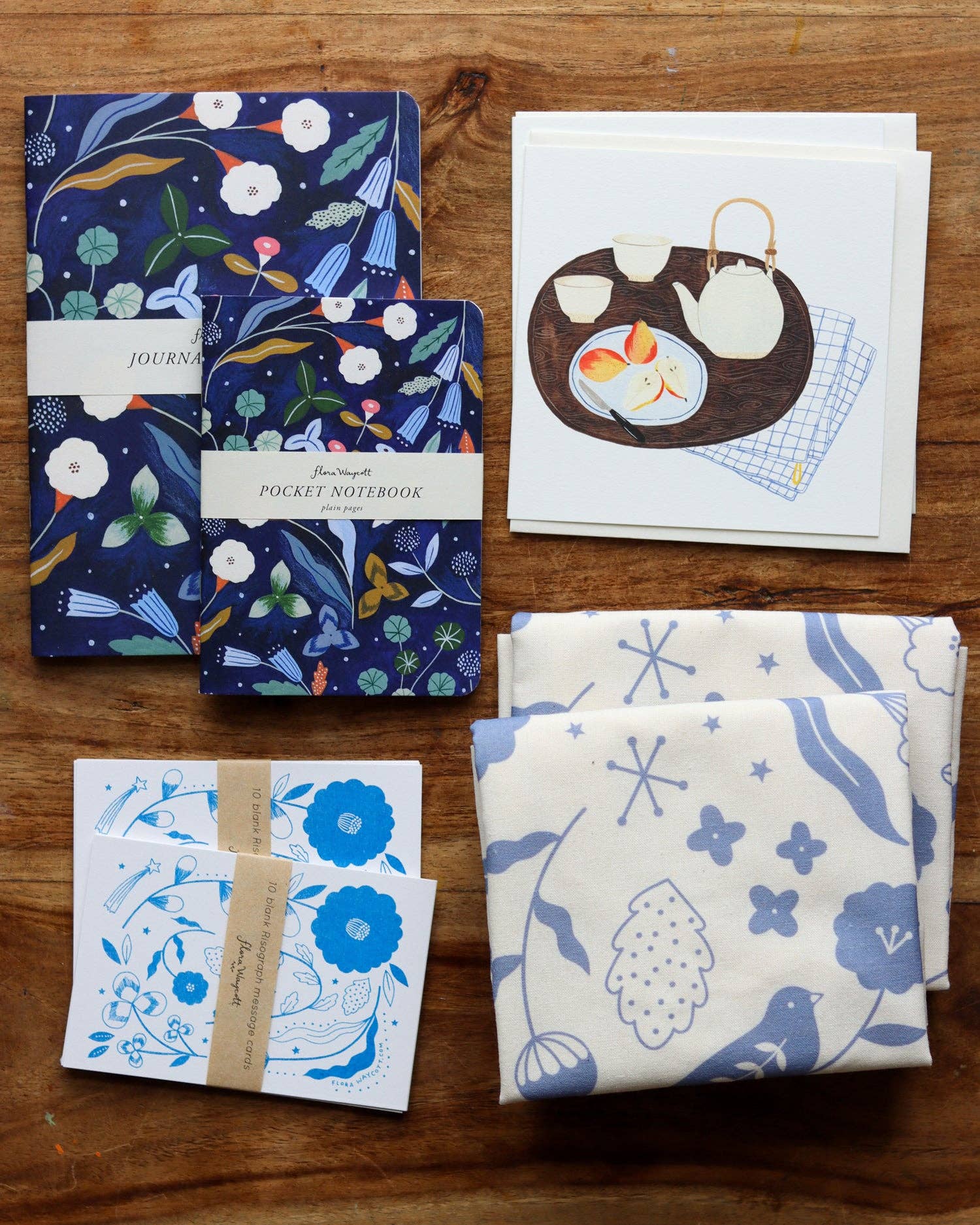 Reproduced from an original Flora Waycott hand painted gouache and watercolour artwork.