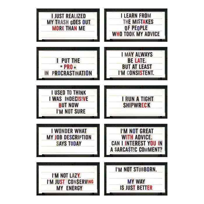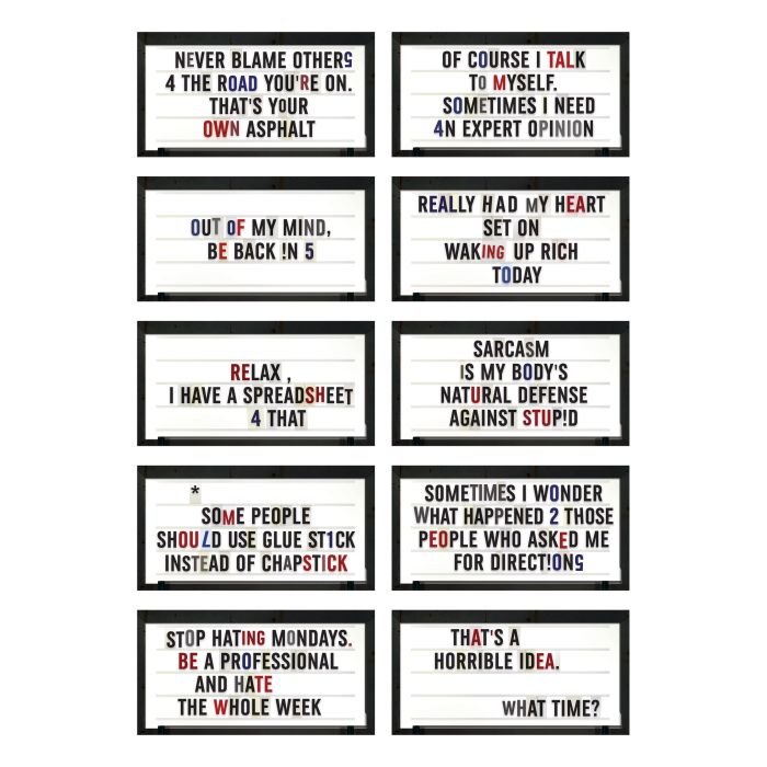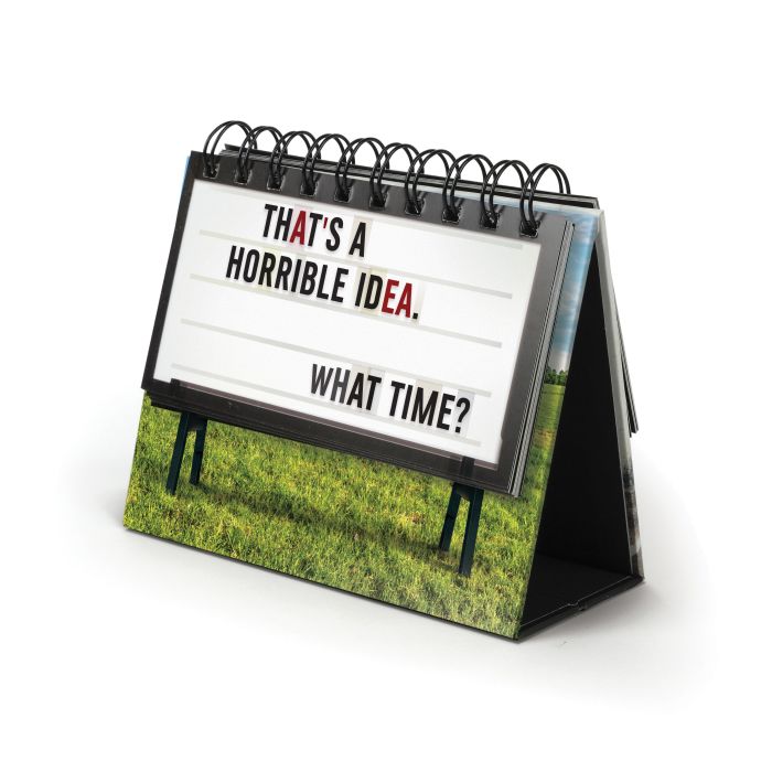 With 52 witty messages, each flip reveals a dose of roadside humour to spark laughter in your workspace.