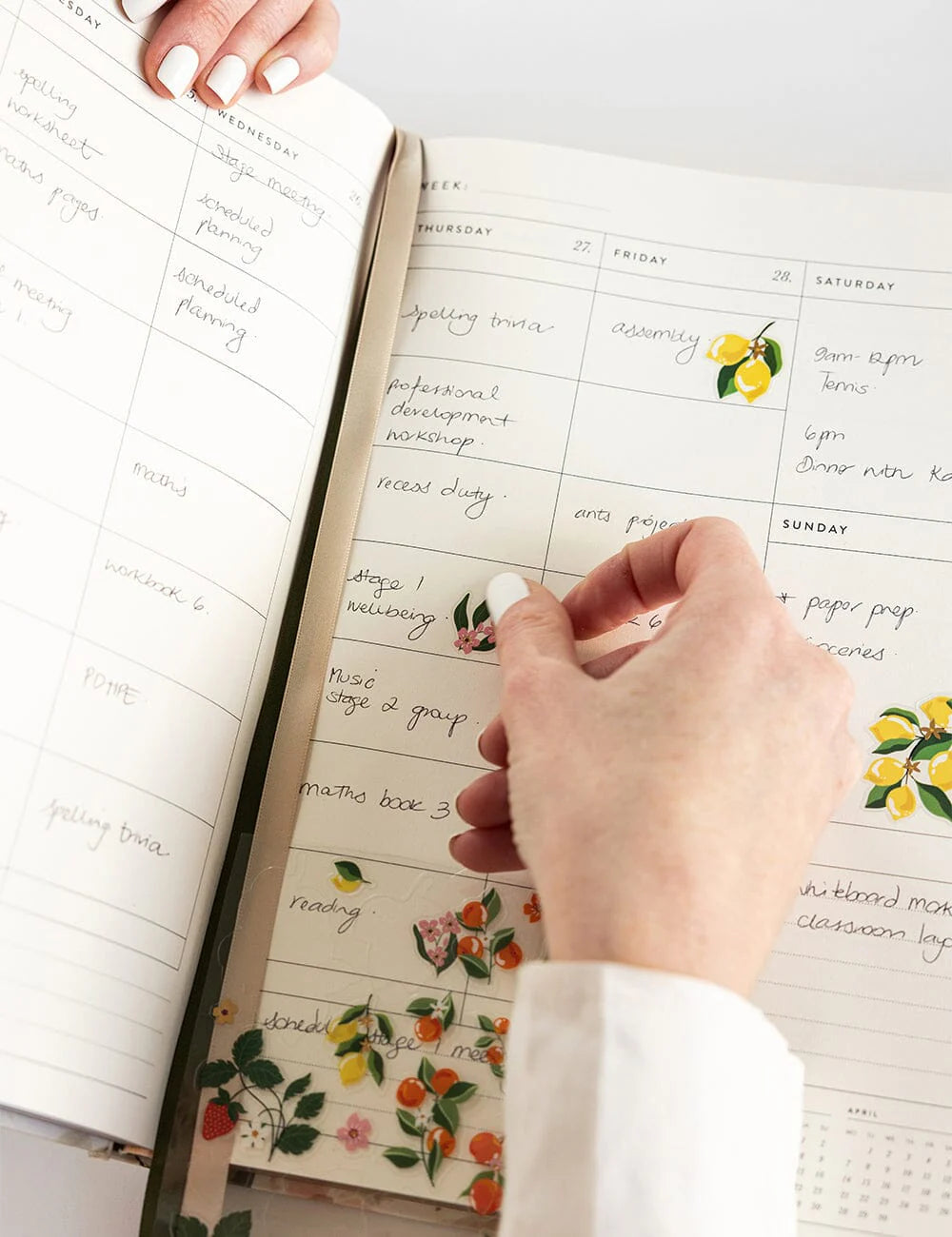 Fruit gold foil accented sticker sheets are designed to bring beauty and joy to your daily routines. Whether you're decorating a journal, planning your week, or sending a heartfelt note, these stickers add a touch of elegance and thoughtfulness to every detail