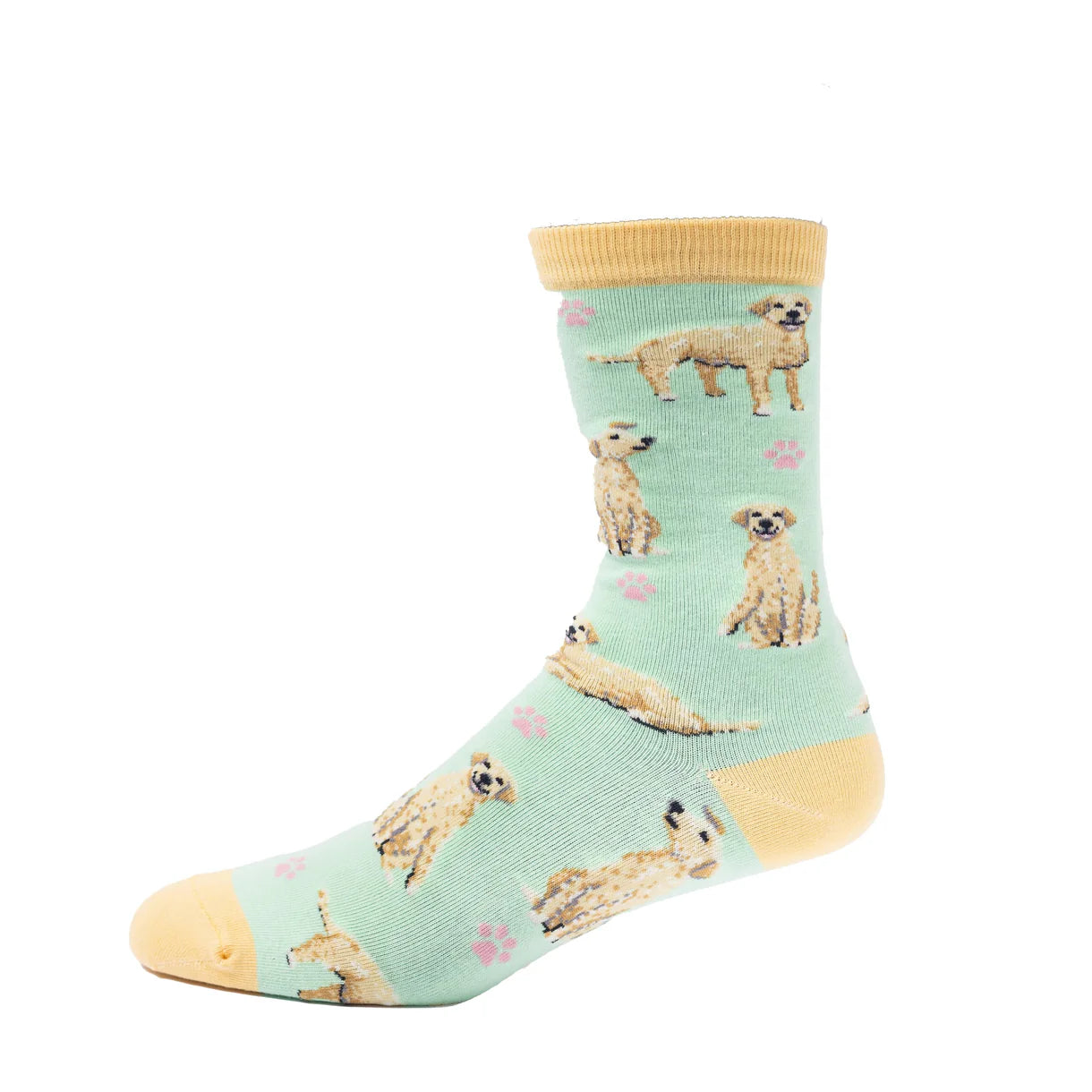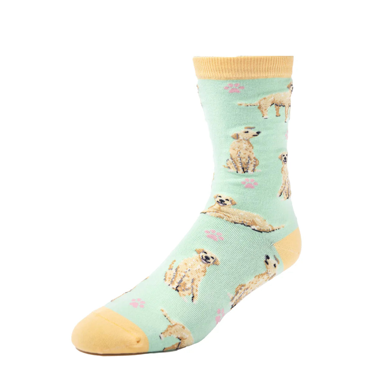 Unleash your love for man's best friend with our Golden Retriever Socks! These adorable socks feature a playful pattern of cartoon-style golden retrievers, capturing the lovable nature of these furry friends. With their friendly expressions, floppy ears, and wagging tails, these pups are sure to bring a smile to your face every time you slip them on.