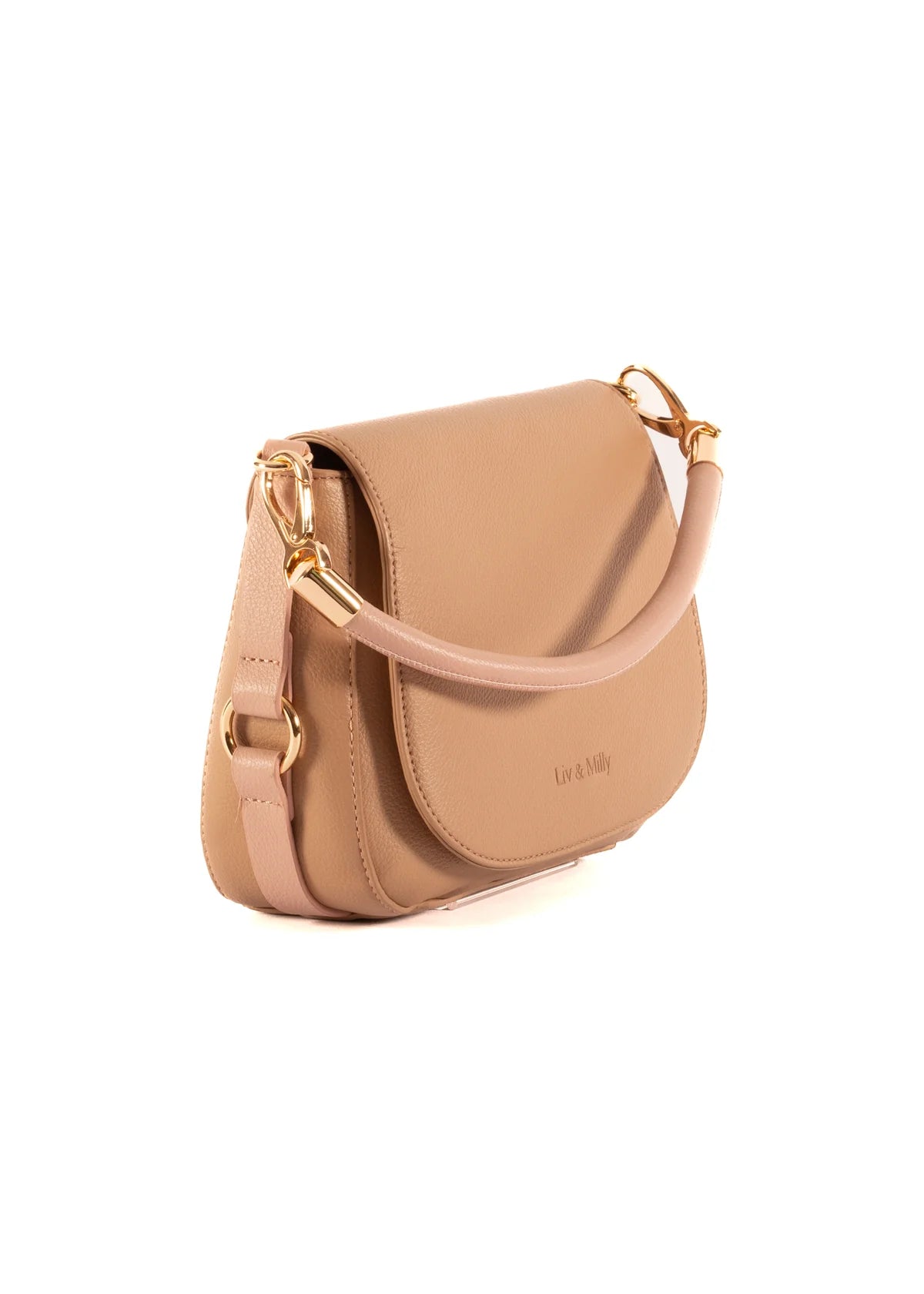 Elevate your everyday with this two-tone crossbody bag, designed for both style and practicality. The lined interior features an internal slip pocket and a zip pocket to keep essentials neatly tucked away. Finished with a sleek rolled, removable shoulder strap, this versatile piece transitions effortlessly from casual to polished—wherever the day takes you.