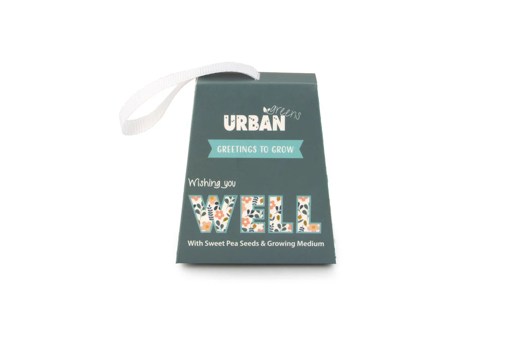 Each includes a sachet of Sweet Pea seeds, growing medium, clear instructions, and a convenient hanging ribbon.