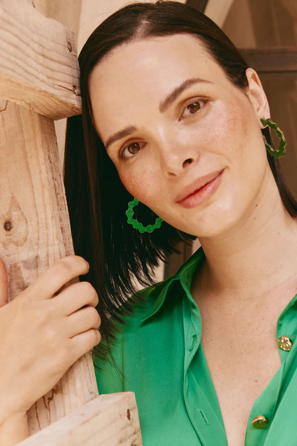 Finish any ensemble with the glimmering Jovial Hoop Earring. These trendy hoops boast a charming wave pattern adorned with shimmering glitter that's sure to catch everyone's eye! It is locked in place with a stud closure, offering comfort and security from AM to PM.