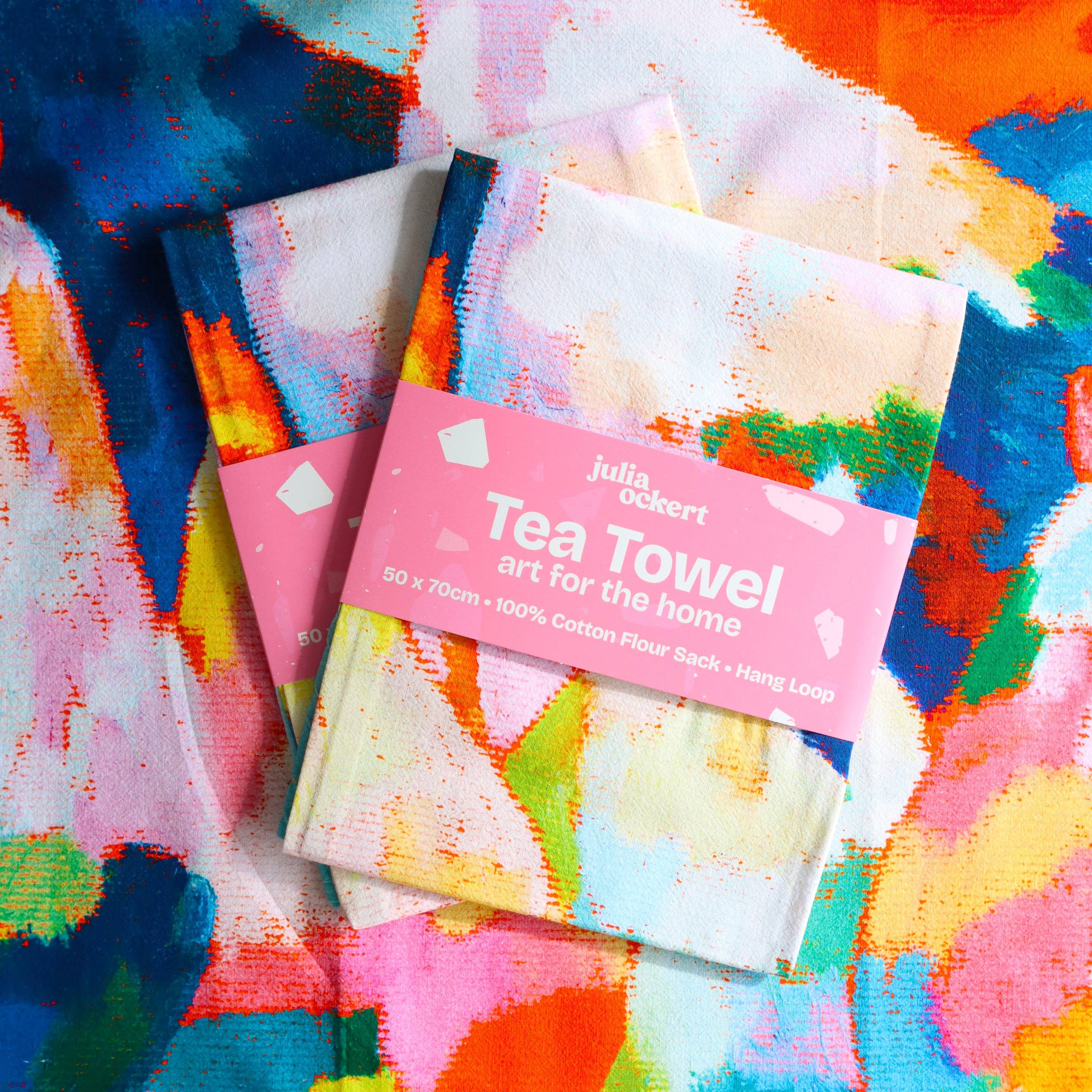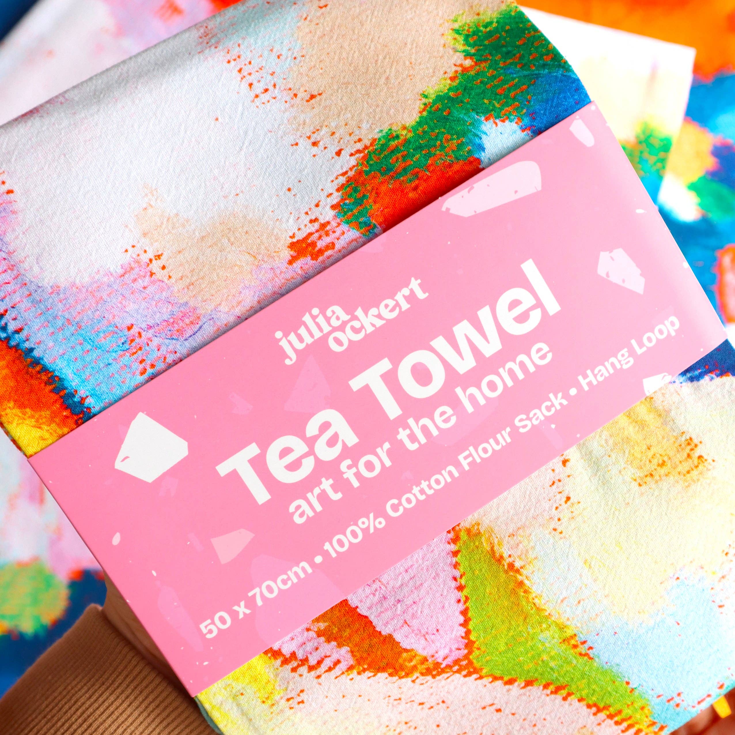 Add colour and joy to your customer's kitchen with this floral tea towel, featuring my original oil pastel artwork "Chicken Extravaganza". Printed on soft, absorbent 100% cotton flour sack with a convenient hang loop. This functional piece of art is perfect for brightening up a kitchen, wrapping a loaf of bread, or gifting to someone who loves vibrant, dopamine decor homewares.