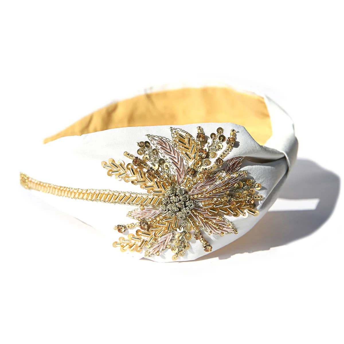 The Palms Beaded Headband has been designed by Jemima Kingston in Australia. Exquisite detailing make this hand beaded headband a beautiful statement piece. The design is colourful, detailed and vibrant.