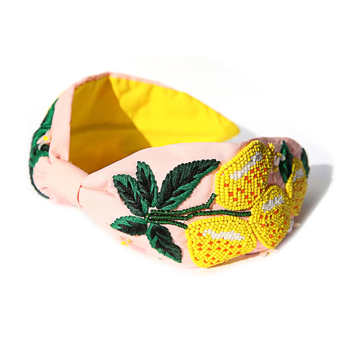 The Pink Citrus Beaded Headband has been designed by Jemima Kingston in Australia. Exquisite detailing make this hand beaded headband a beautiful statement piece. The design is colourful, detailed and vibrant.