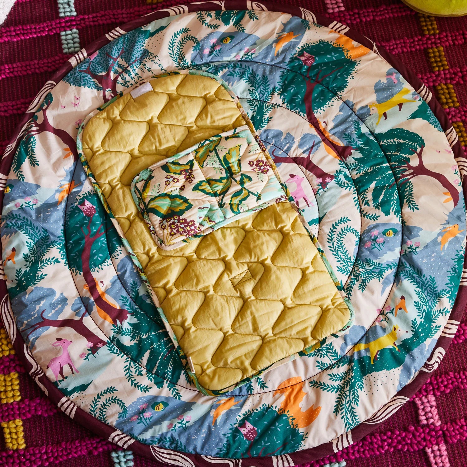 Designed for changes on the go, our beautiful change mats are made from ultra-soft, padded double cotton. Fold it up and tote it in your baby bag as you spend the day together.