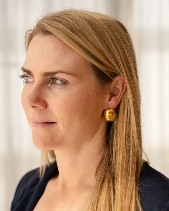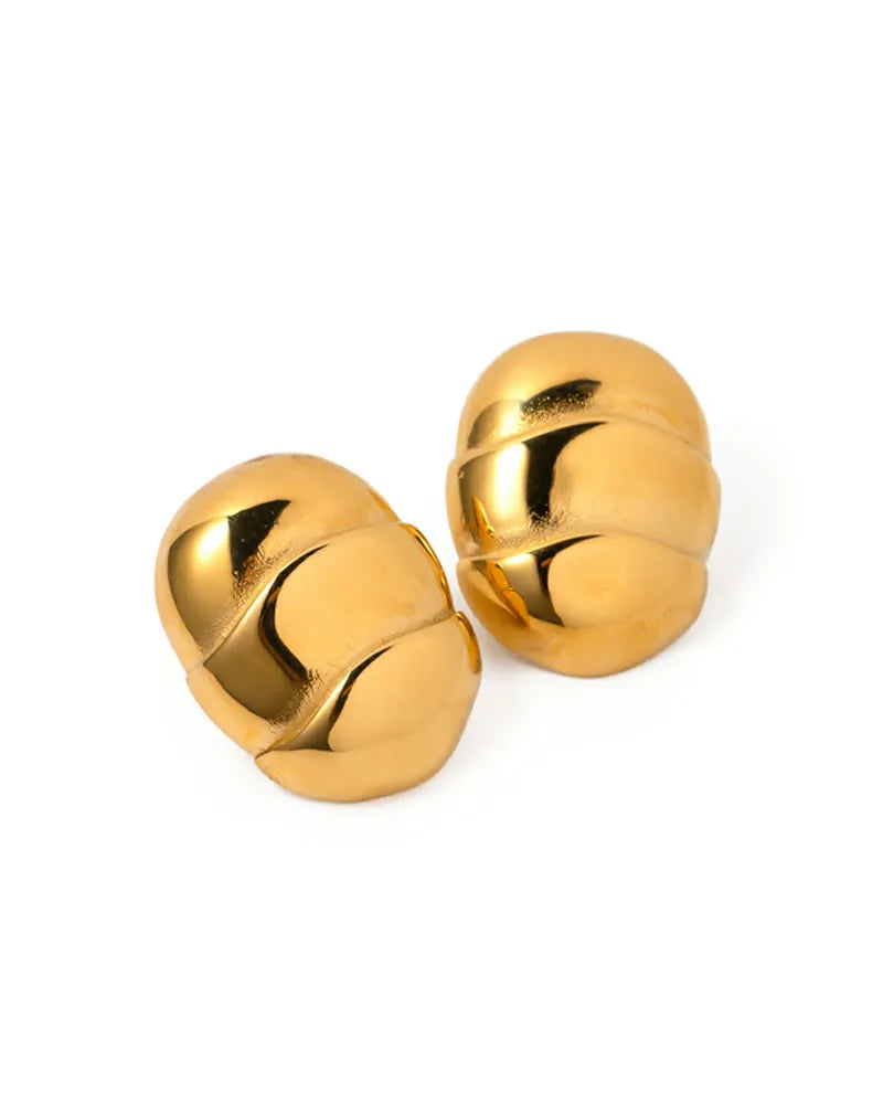Margot is pure glamour with a golden glow. These oval gold studs, with their soft ribbed texture and rounded edges, feel like something a screen siren would’ve worn—lounging on the deck of a yacht, sipping something bubbly, or stepping out of a vintage convertible in head-to-toe elegance. Chic, sculptural, and effortlessly stylish, Margot adds that touch of vintage polish to any outfit. Old-school cool, back in all the right ways.