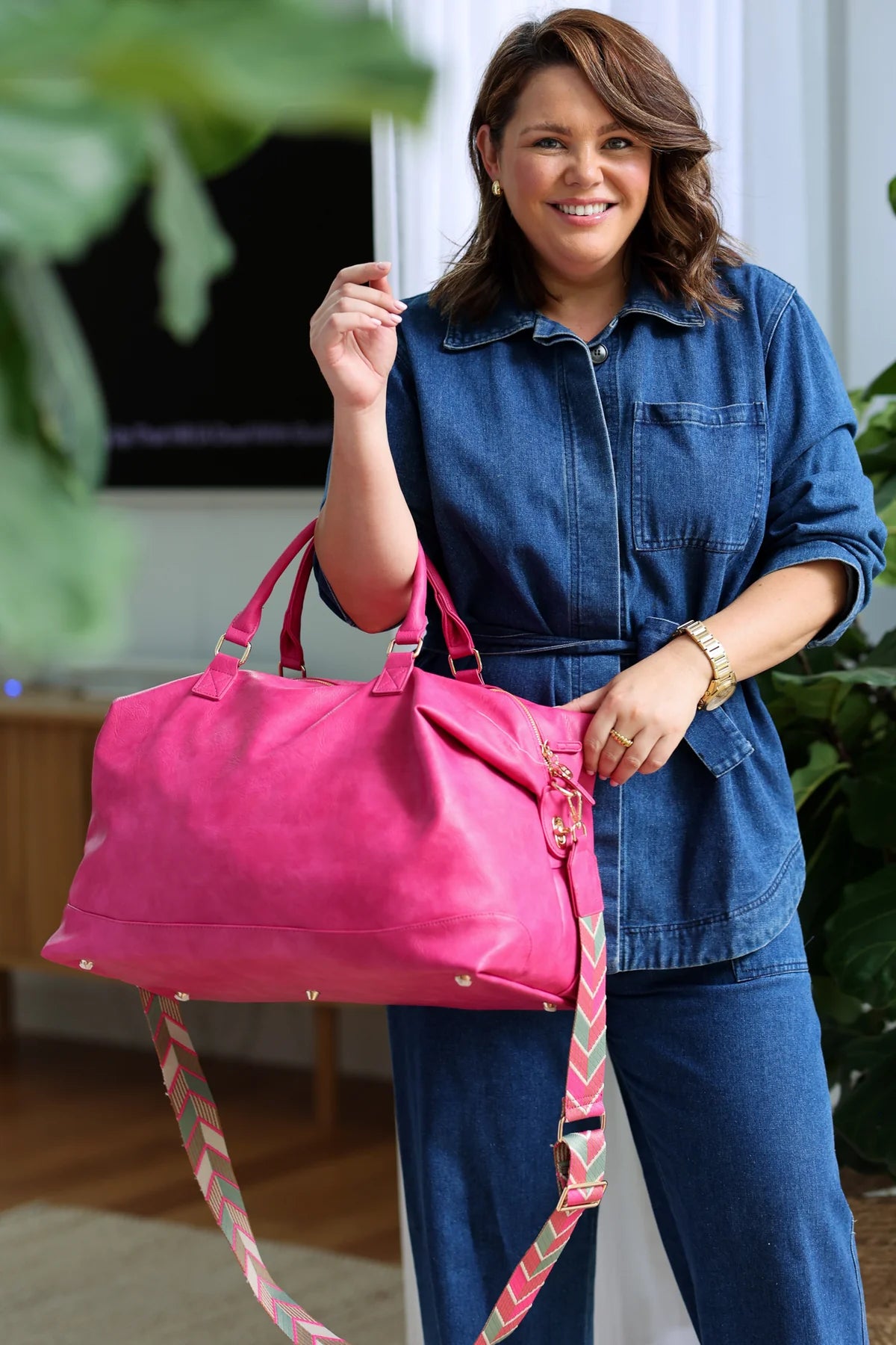 Our Overnight Bag is a fabulous companion for a short stay. Our stylish hot pink overnight bag is the perfect size for a weekend away. Never worry about packing again and enjoy the ultimate dopamine hit.