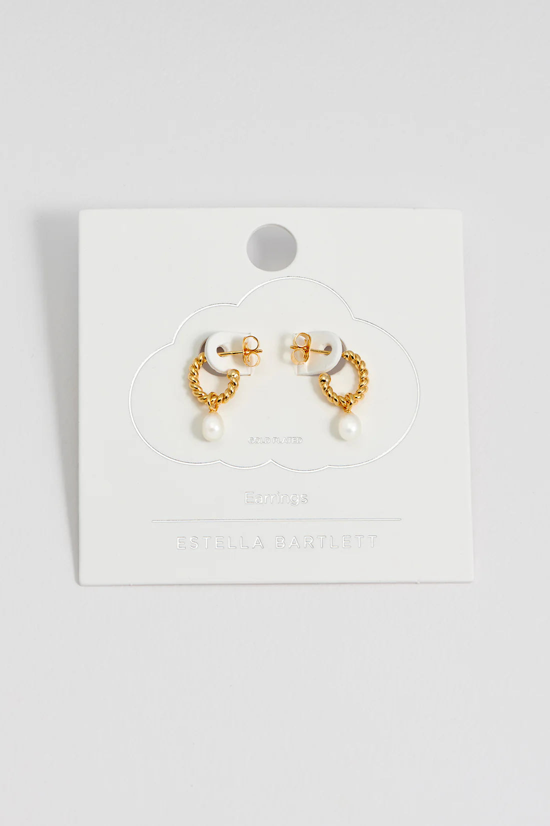 Pearl Drop And Twist Hoop Earrings - Gold Plated