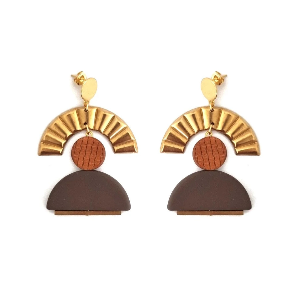 Sent from above, our Raindance earrings are a heavenly composition of brass, acrylic and etched timber. We've perfected the dance between these materials, let the compliments rain down.