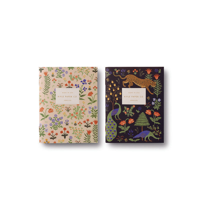 RIFLE PAPER CO - PACK OF 2 STITCHED NOTEBOOKS - PLAIN - POCKET - MENAGERIE