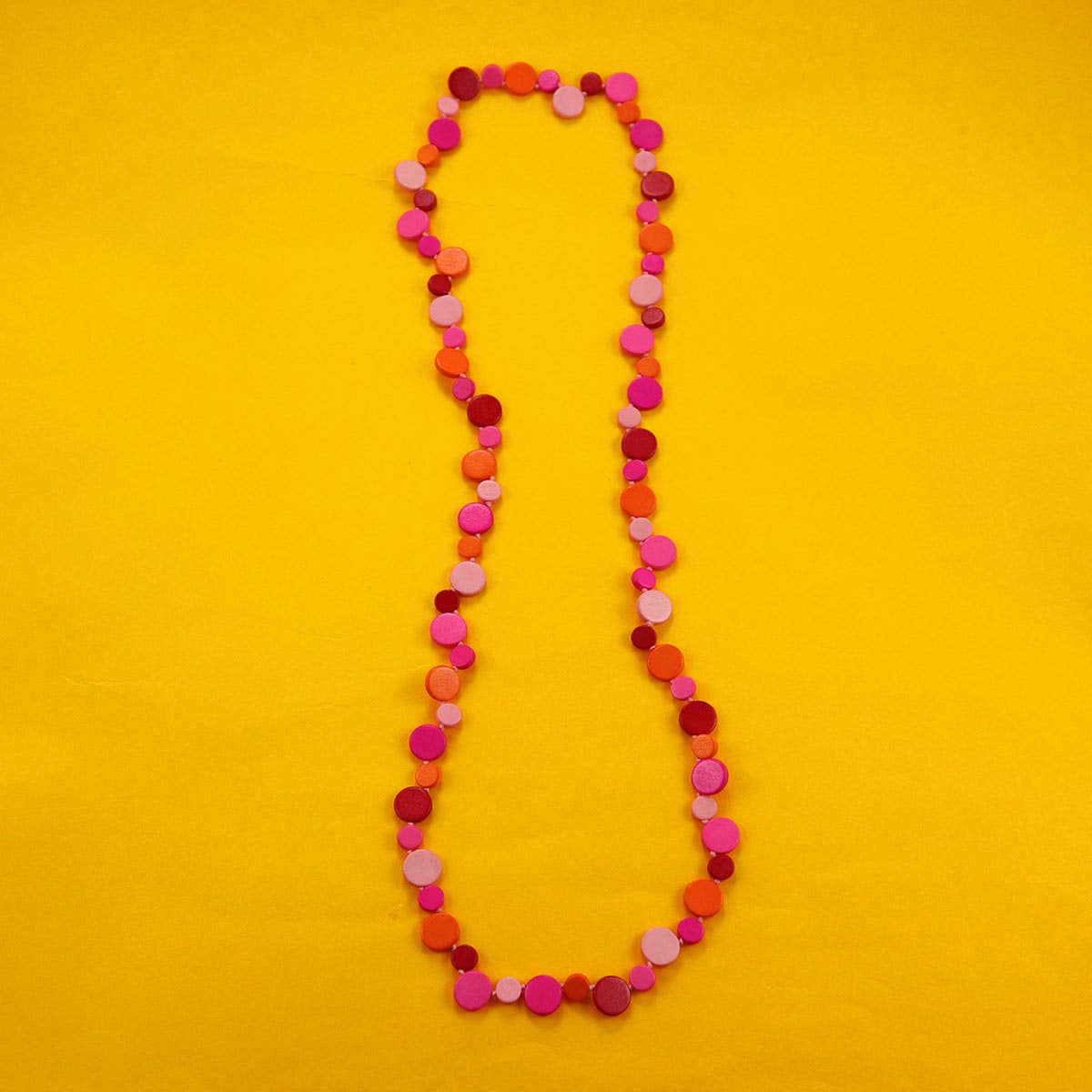 A playful reimagination welcomes a tonal delight of sustainability sourced wooden beads in alternating sizes and blue hues. WEAR ME LONG OR DOUBLE ME OVER The Smartie Long Wood Necklace is made from sustainably sourced coconut wood beads and strung on high quality cord as a finished single strand (no clasp or metal components). Making it super lightweight and oh so versatile! You may find inconsistencies in colour and finish due to the nature of the material used, but we believe this is part of their unique beauty. MEASUREMENTS Neck drop: 49cm approx.