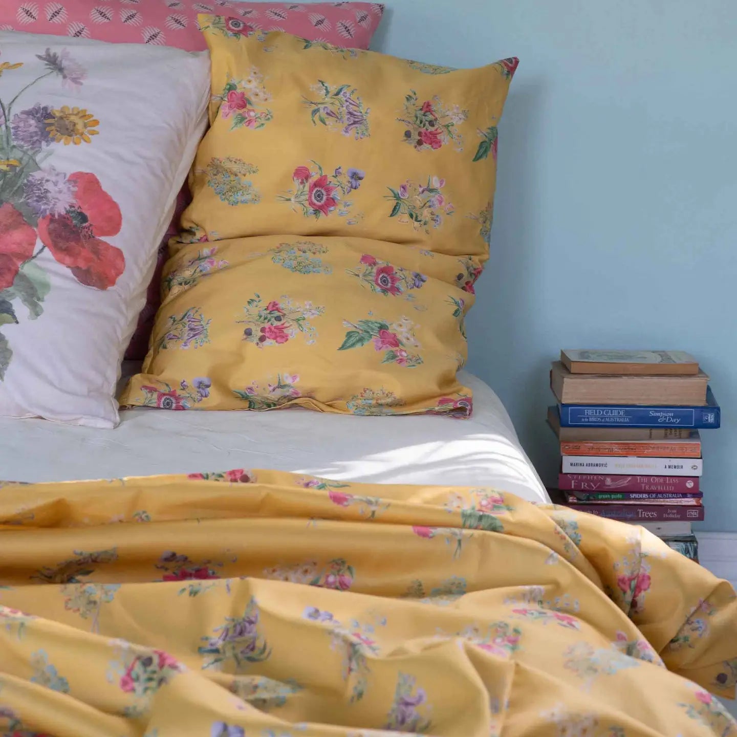 This design is based on a combination of botanic illustrations on a background of mustard yellow.