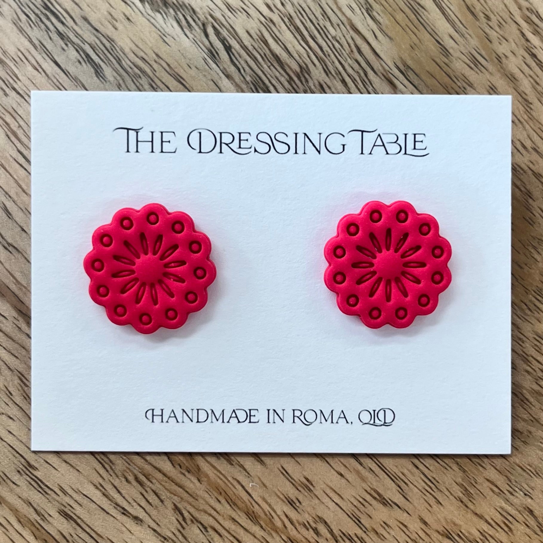Crafted by hand in Roma, Queensland, these charming earrings blend artisan polymerclay with hypoallergenic findings.