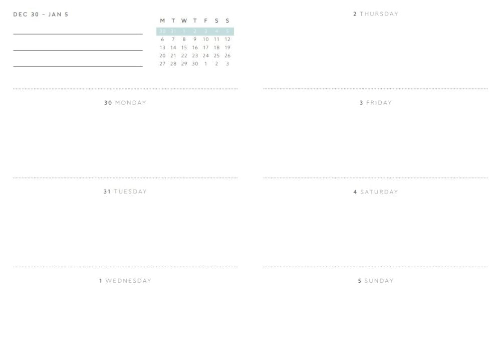 - Week to a double page format