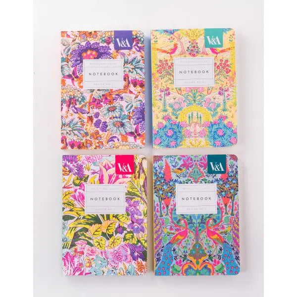V&A A6 Soft Cover Notebook-Neon Floral Peacock