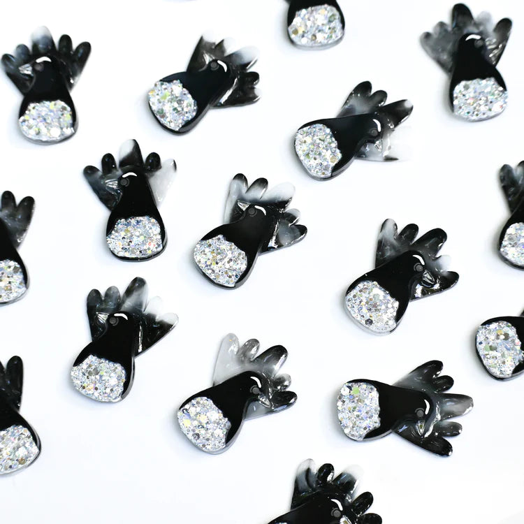 All earrings are completely handmade by my own two hands this means that each individual earring within the pair will be different in terms of glitter placement, making each bird unique. Resin begins as a free moving liquid and therefore is poured differently each time. Slight cosmetic imperfections may be present on the earrings, but these do not affect the integrity of the earring design and are unique to handmade resin items. Quality control is high at Lunar HQ and I would never send out an item which I would not be happy to wear myself. Please also note that hand drawn details with paint pens, will fade if rubbed.